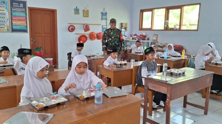 Babinsa Kenjo Dampingi Program MBG di Sekolah Dasar, Begini Cara Sertu Zaenur Tanamkan Disiplin Sejak Dini
