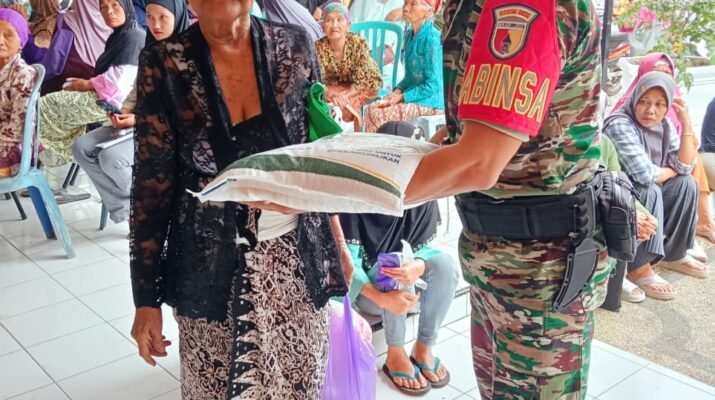 Glagah – Penyaluran Bantuan Pangan untuk 473 Keluarga Penerima Manfaat (KPM) di Desa Kampunganyar, Kecamatan Glagah, Banyuwangi, berlangsung aman dan tertib berkat pengawalan langsung