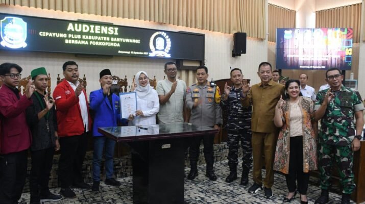 Banyuwangi – Komandan Kodim 0825/Banyuwangi Letkol Arh Joko Sukoyo, S.Sos., M.Han., bersama jajaran Forkopimda Kabupaten Banyuwangi melaksanakan audiensi dengan Cipayung Plus yang bertempat di