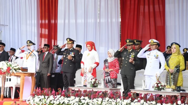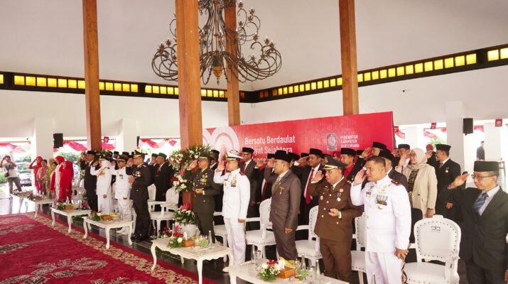 Banyuwangi – Komandan Kodim 0825/Banyuwangi Letkol Arh Joko Sukoyo, S.Sos., M.Han menghadiri upacara peringatan detik-detik Proklamasi Kemerdekaan Republik Indonesia ke-80 dan pengibaran bendera merah