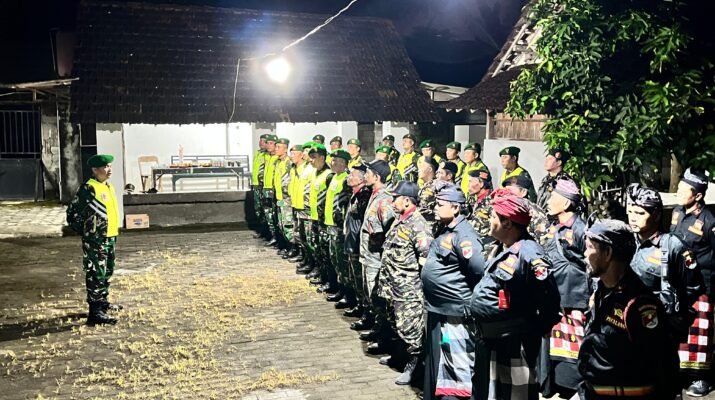 TNI, Banser, dan Pecalang di Bangorejo Kompak Gelar Apel Malam dan Patroli Gabungan