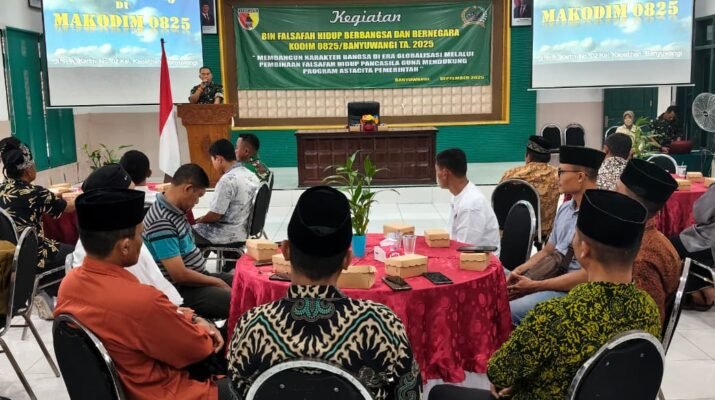 Banyuwangi – Kapten Czi Sahar Susanto mewakili Dandim 0825/Banyuwangi memimpin kegiatan Pembinaan Falsafah Hidup Berbangsa dan Bernegara TA 2025 di Aula Makodim 0825, Selasa