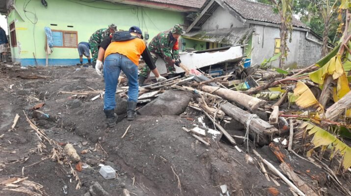 Lumajang — Upaya penanggulangan dampak erupsi Gunung Semeru di Kecamatan Pronojiwo kembali digencarkan. Personel Kodim 0821/Lumajang bergerak cepat membantu warga yang terdampak, dengan melaksanakan