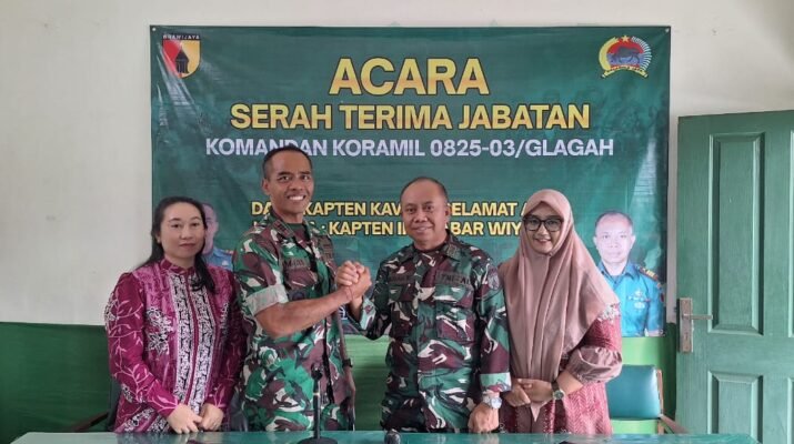 Glagah – Komando Rayon Militer (Koramil) 0825-03/Glagah resmi melaksanakan serah terima jabatan (sertijab) Danramil dari Kapten Kav I.M. Selamat Adi S kepada pejabat baru Kapten Inf Sabar Wiyono pada Sabtu, 22 November 2025, mulai pukul 09.00 WIB hingga selesai, bertempat di Makoramil Glagah.