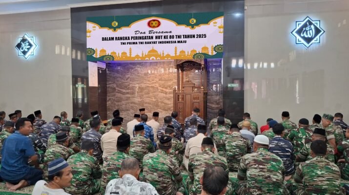 Banyuwangi, 4 Oktober 2025 – Dalam rangka memperingati Dirgahayu Tentara Nasional Indonesia (TNI) ke-80, anggota Kodim 0825/Banyuwangi melaksanakan doa bersama di Masjid A. Yani, Makodim 0825/Banyuwangi, pada Jumat (4/10/2025).