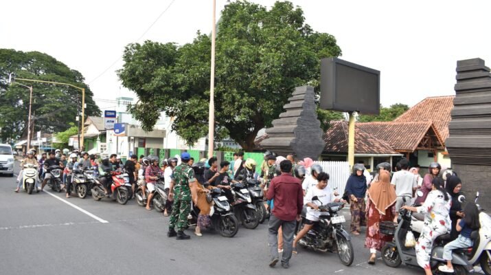 BANYUWANGI – Semangat berbagi di bulan suci Ramadan terasa hangat di depan Markas Kodim 0825/Banyuwangi, Sabtu (7/3/2026) sore. Ibu-ibu Pengurus Persit Kartika Chandra Kirana (KCK) Cabang XXXIX Kodim 0825/Banyuwangi menggelar kegiatan sosial pembagian takjil kepada masyarakat pengguna jalan dan warga sekitar. Kegiatan yang berlangsung di Jl. R.A. Kartini No.2, Kelurahan Kepatihan, Kecamatan Banyuwangi.