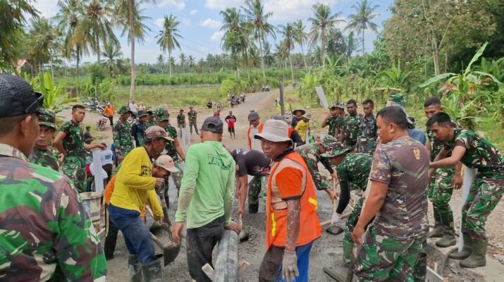 Selain mengerahkan personel TNI, pengerjaan jembatan ini juga melibatkan partisipasi aktif warga setempat. Gotong royong antara Satgas TMMD dan masyarakat menjadi wujud nyata kemanunggalan TNI dengan rakyat, sekaligus mempercepat proses pembangunan. Dengan kerja sama yang solid, pengecoran jembatan berjalan lancar meskipun medan cukup menantang.