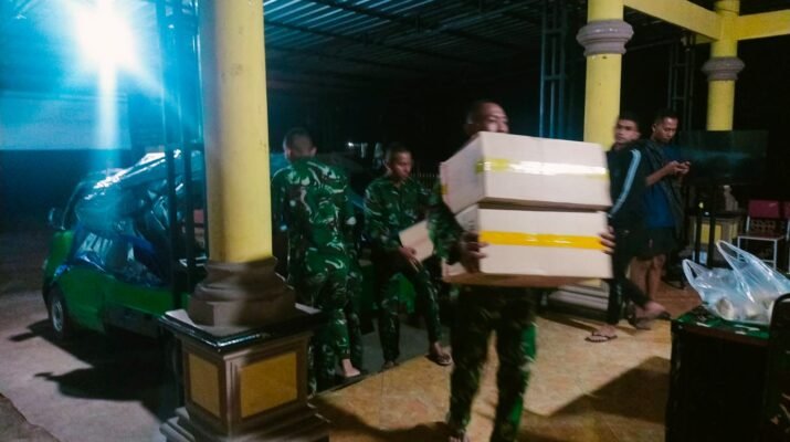 Meskipun kondisi cuaca tidak menentu dan akses menuju beberapa titik distribusi masih terhambat material vulkanik, personel TNI tetap melakukan tugasnya dengan penuh dedikasi. Di bawah penerangan seadanya, mereka saling bahu-membahu menurunkan berbagai kebutuhan pokok seperti makanan, selimut, pakaian, air bersih, serta perlengkapan harian lainnya.