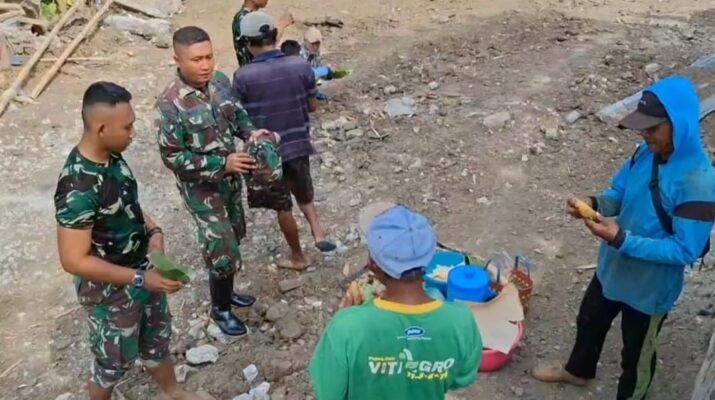 Banyuwangi – Kehangatan kebersamaan antara Satgas TNI Manunggal Membangun Desa (TMMD) ke-125 Ta. 2025 Kodim 0825/Banyuwangi dengan masyarakat terlihat jelas di lokasi kegiatan. Di