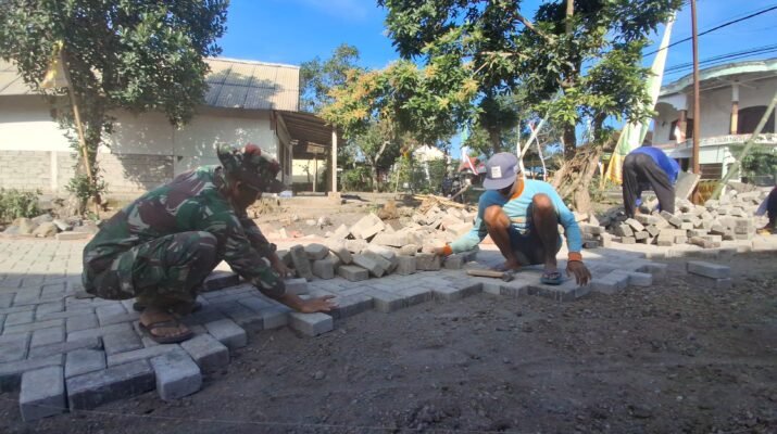 Banyuwangi – Satgas TNI Manunggal Membangun Desa (TMMD) ke-125 Kodim 0825/Banyuwangi terus melanjutkan pengerjaan paving jalan menuju jembatan penghubung di wilayah Kecamatan Siliragung, Kamis