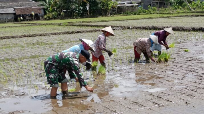 Dengan semangat gotong royong, mereka turun ke sawah untuk menanam padi bersama. Aktivitas ini bukan sekadar menanam padi, tetapi juga menjadi wujud nyata kedekatan TNI dengan masyarakat.